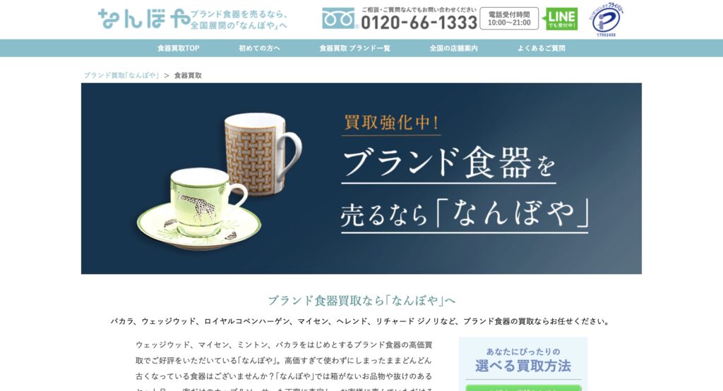 例えば「高級食器ならブランド買取専門」「和食器なら陶芸作品に強い」のように、ブランドやジャンルに強い査定士が在籍している業者を選ぶことが高価買取への近道です。